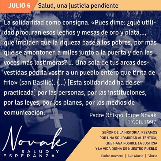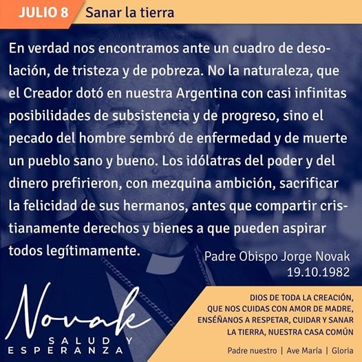 «Novak, salud y esperanza» Novena en memoria agradecida del Padre Obispo Jorge Novak (1928-2001)